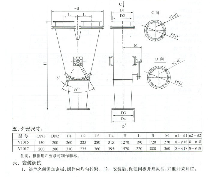 煤粉兩路分料閥是一種物料氣體輸送換向閥。對(duì)水泥、生料、煤粉等粉狀物料及其無粘性、無腐蝕的干粉狀物料氣體輸送管通進(jìn)行頻繁或間斷換向。物料流通可分一進(jìn)兩出或兩進(jìn)一出,廣泛應(yīng)用于建材、冶金、礦山、化工、輕工、玻璃等行業(yè)。