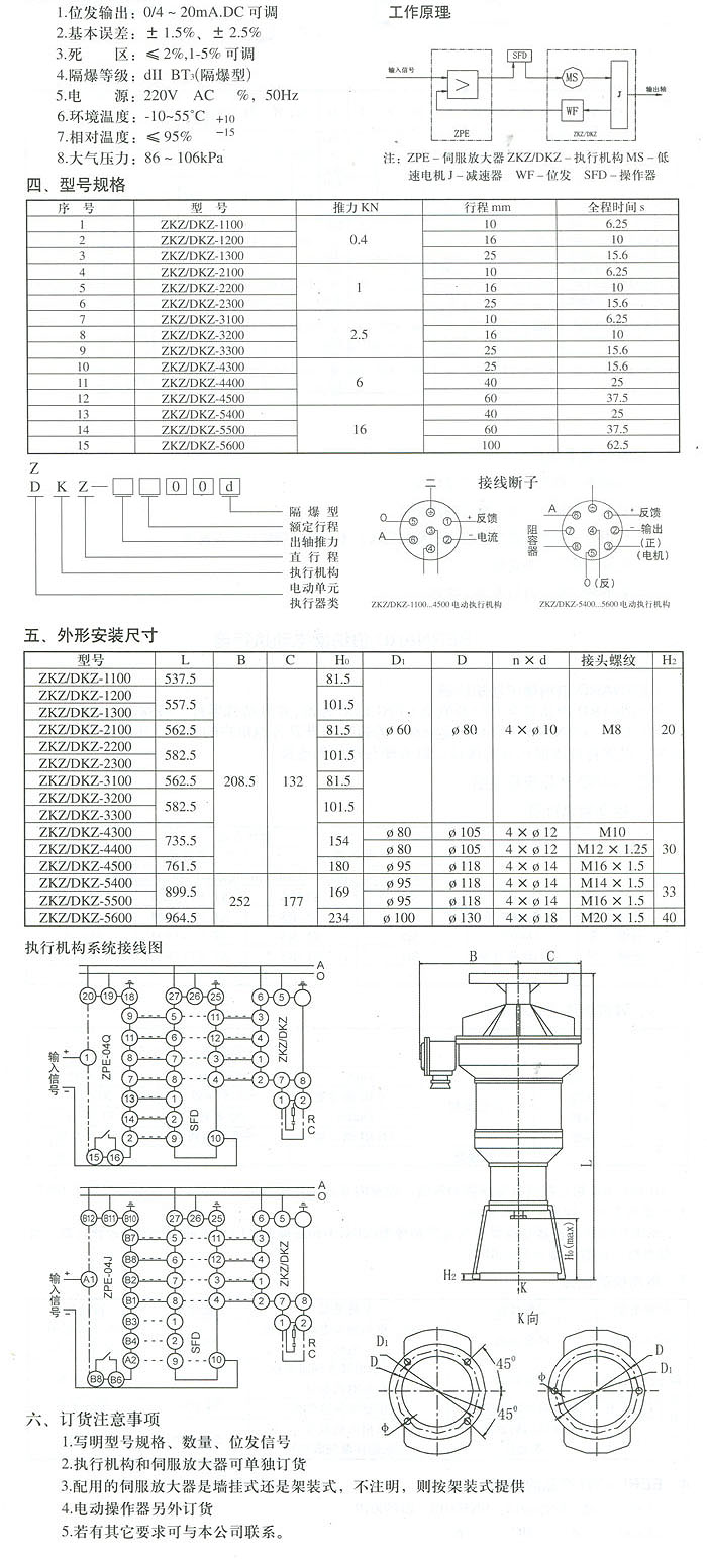 ZKZ/DKZ型電動執(zhí)行機(jī)構(gòu)有普通型與隔爆型兩種。隔爆型可用于無腐蝕的IIA、IIIB類,且溫度組別為T1, T2. T3的氣體環(huán)境。